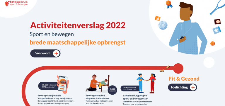 2022 was een bewogen jaar, veel zekerheden bleken ineens niet meer zo zeker. Reden dus om aandacht te blijven vragen voor de inzet van sport en bewegen! Deze infographic brengt onze meest succesvolle producten en projecten van afgelopen jaar in beeld.