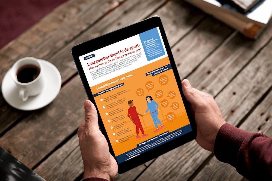 Om verenigingskader, buurtsportcoaches en andere sportprofessionals op weg te helpen om deze doelgroep goed te betrekken hebben we – in samenwerking met Pharos – deze tipkaart ontwikkeld. Aan de hand van veelvoorkomende situaties uit de praktijk legt deze tipkaart uit aan welke signalen laaggeletterdheid te herkennen is.