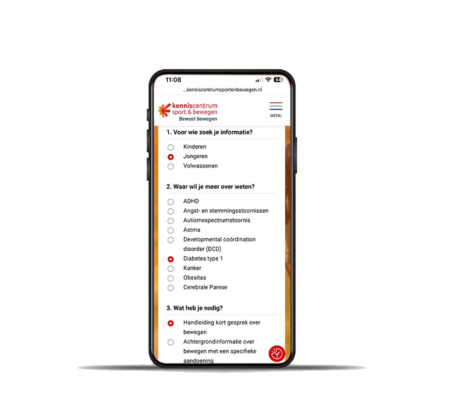 In het geval van kinderen en jongeren kun je kiezen voor de aanpak van een kort gesprek of voor extra informatie als je behoefte hebt aan meer achtergrondinformatie over bewegen bij een specifieke aandoening.